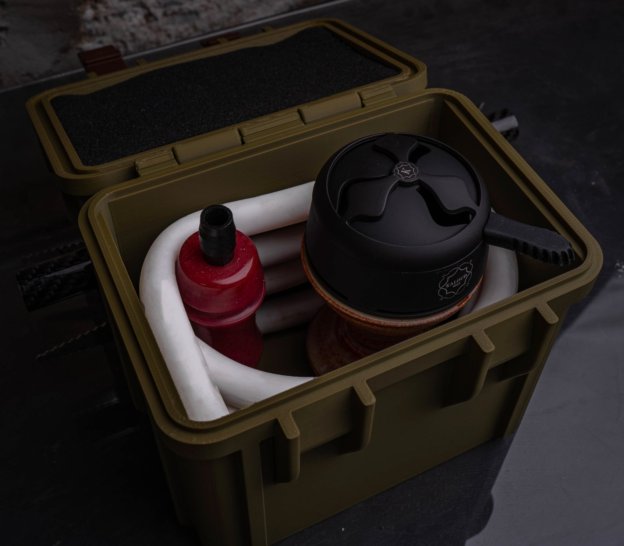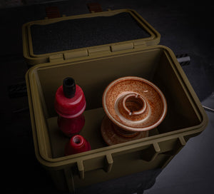 Elevate your travel experience with the USA-made Travyl Case. This tidy, handheld solution is meticulously designed with grommets and special slots to securely hold your Tymber hookah hose, a bowl, tongs, fork, HMD, silicone hose, and more. Bowls and hoses lock into place, ensuring your gear is organized and protected on the go. With all your essentials in one place, all you need to add are coals and a hookah, and you're ready to travel anywhere!